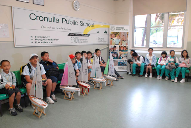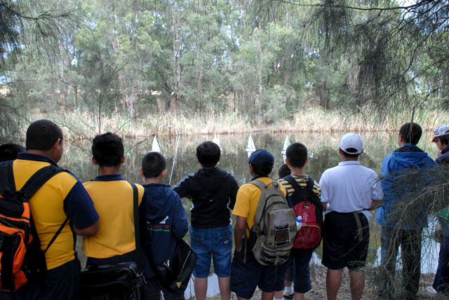 中澳双方学生在做科技体育项目:航海模型竞赛交流