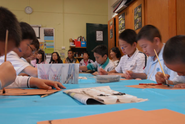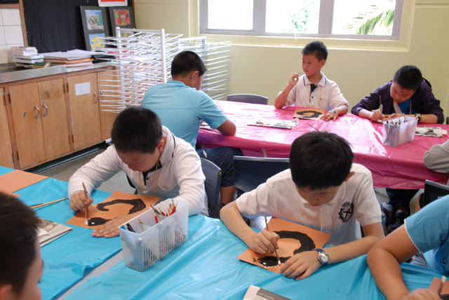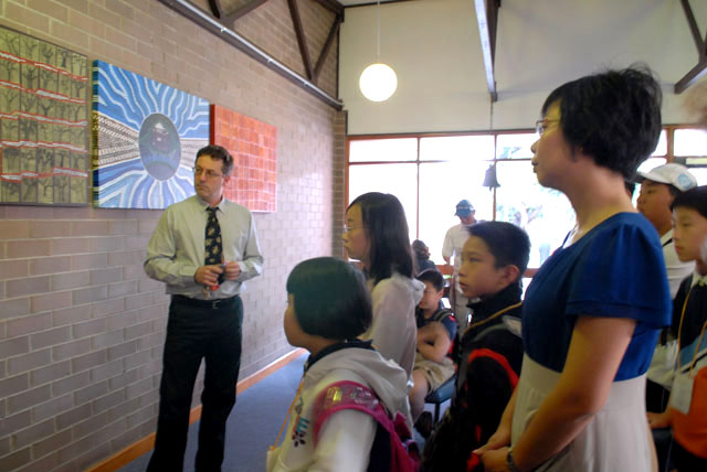 澳大利亚也是一个注重多元文化的国家,教育交流活动中的艺术课就是让学生学习澳洲原住民的图腾文化,也是让学生们自己动手绘画一个典型的图腾,让中国孩子们亲身感受异国古代文明的魅力。