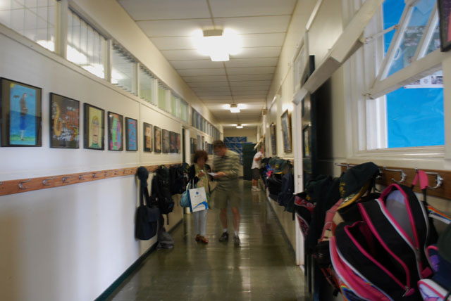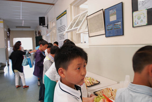 中国学生安静有序地在教室外期待着“全新课堂体验”的开始。